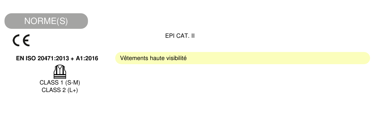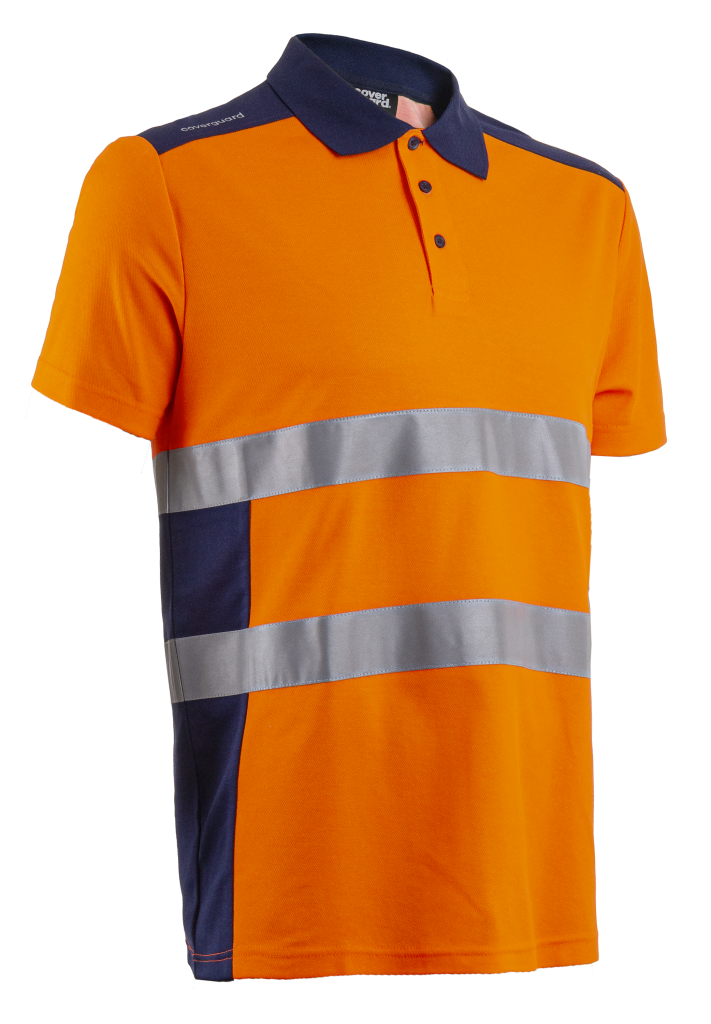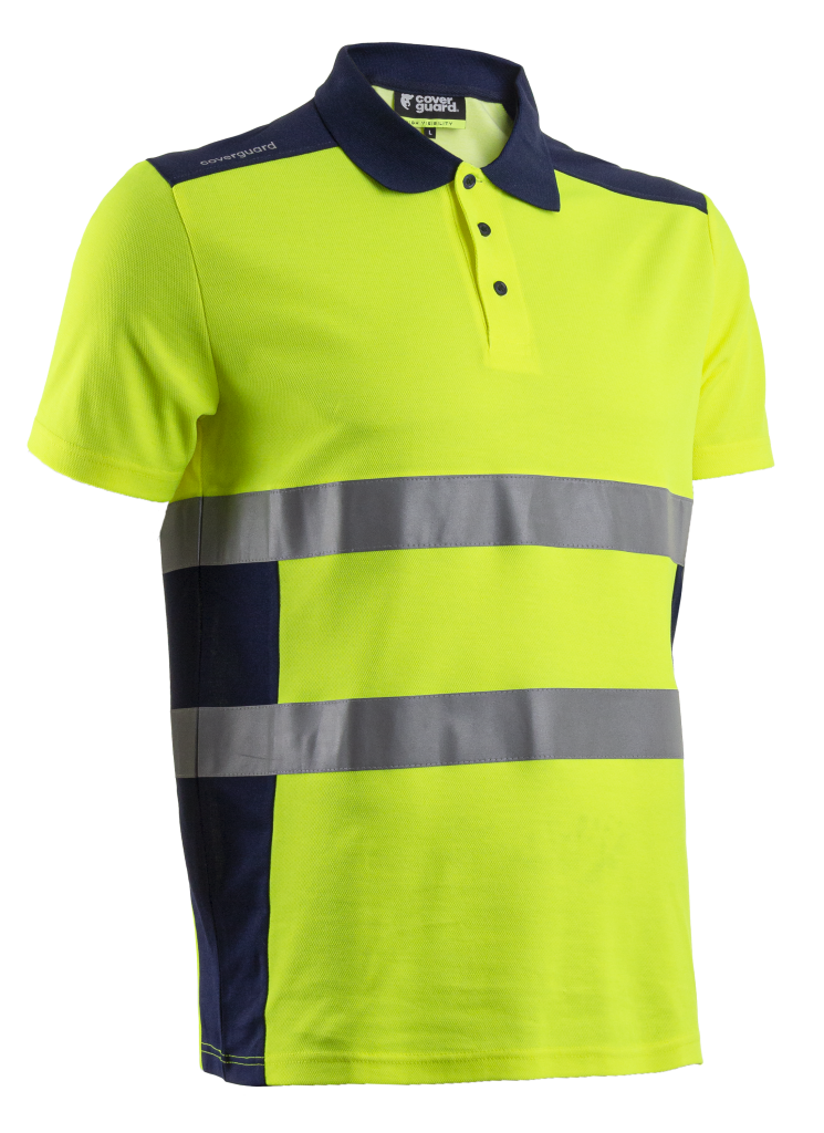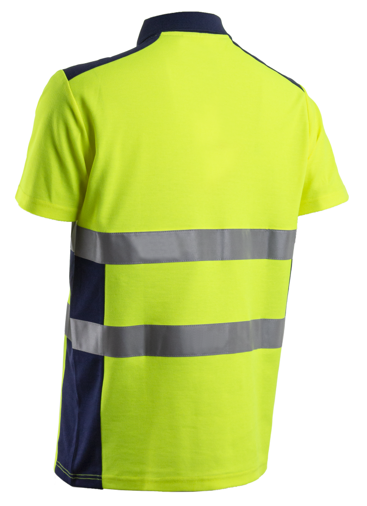 MAILLE BIRD-EYE: 55% Coton / 45% Polyester - 150g/m2 - UPF 35+ Col polo Manches courtes 50 lavages EN 20471: 2 (S-M) EN 20471: 3 (L+)