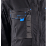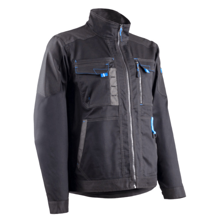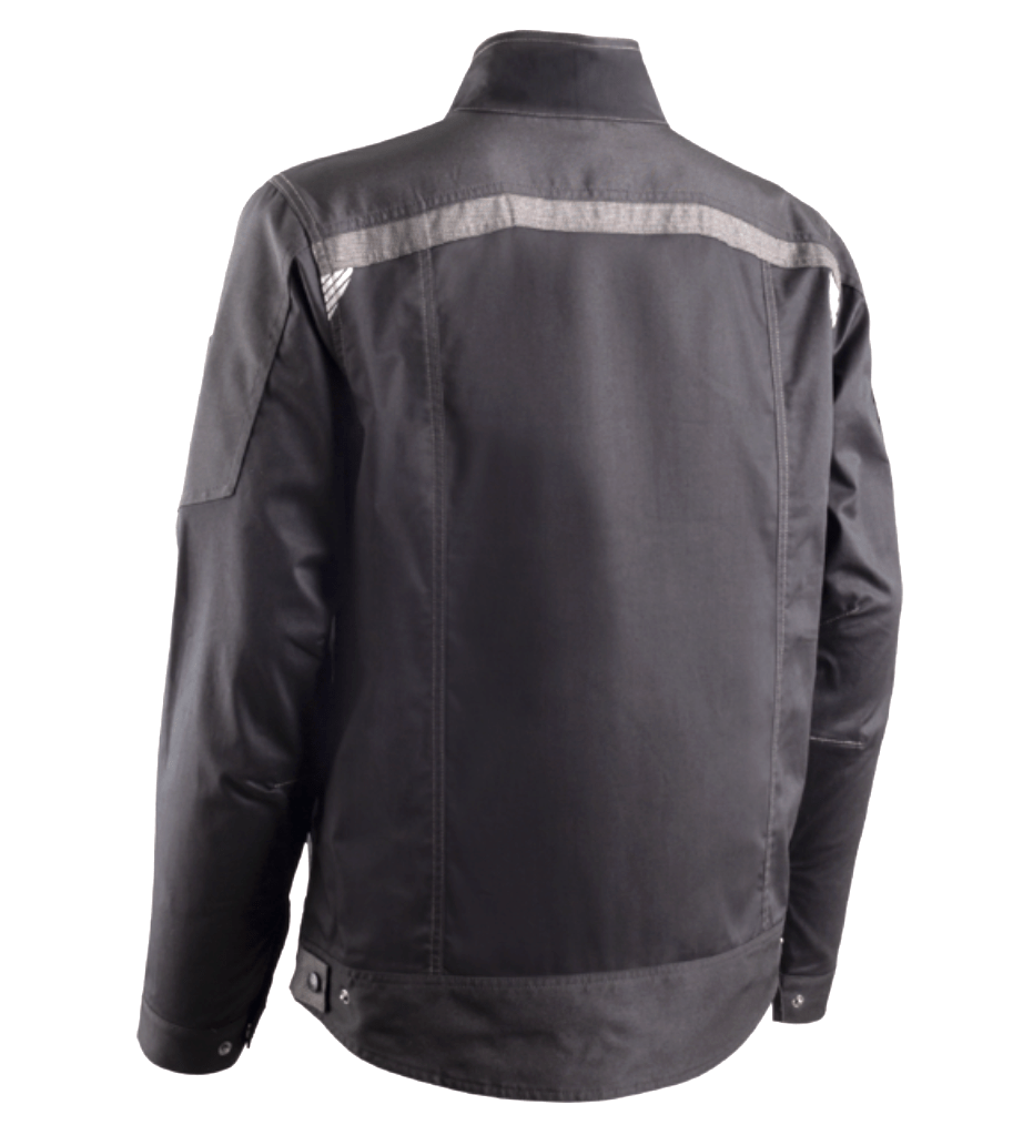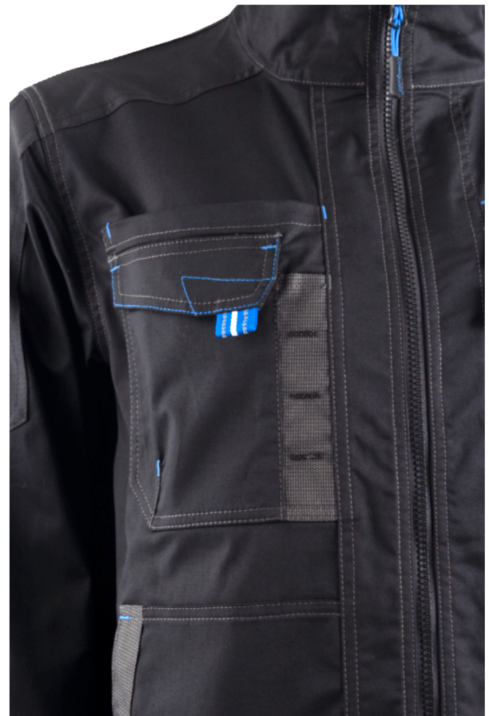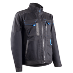 SERGÉ: 65% Polyester recyclé GRS / 32% Coton / 3% Élasthanne - 250g/m2 + Oxford fantaisie 300D Dos rallongé 6 poches Col montant Zip central Poignets et taille ajustables