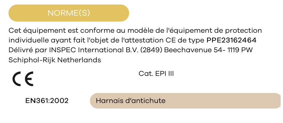 Le harnais à deux points FELIS assure une protection contre les chute de hauteur. Dispositif de préhension du corps destiné à arrêter une chute, il assure une répartition homogène des efforts résultant d'une chute à travers tout le corps. * Caractéristiques : Porte-longes * Sangle : Sangle polyester 44 mm * Points d'attache : 2 points antichute : D d'accrochage dorsal et point d'accrochage sternal par boucles textiles * Boucles : Boucles manuelles * Ajustements : Sangle sternale et cuissardes réglables * Résistance rupture : > 15kN * Poids : 960 g