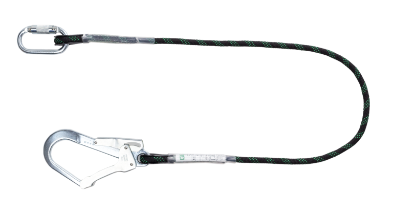 Cette longe de retenue en corde tressée assure une protection contre les chute de hauteur en limitant le rayon de déplacement de l'utilisateur pour l'empêcher d'atteindre une zone à risque de chute. Elément de liaison pour un système de retenue, ne doit en aucun cas être utilisée pour l'arrêt de la chute. * Boucles cossées * Matériau : Corde tressée en polyamide Ø 11 mm * Connecteurs : 1 mousqueton acier à vis et 1 connecteur acier ouverture 50 mm * Taille : 1,5 m * Résistance rupture : > 22 kN * Poids : 900 g