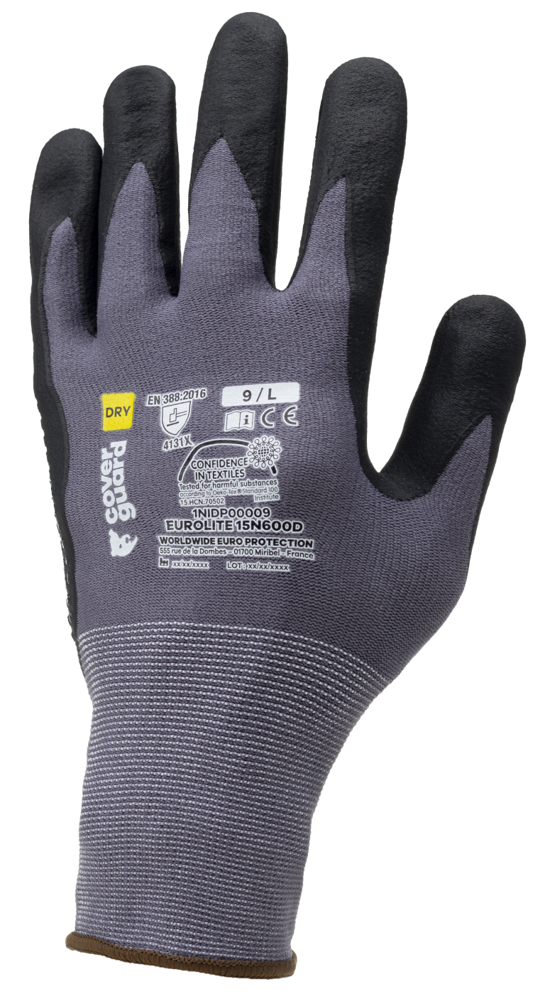 COVERPERF BREATHABILITY : Confort, respirabilité maximum Sensation seconde peau Picots sur la paume : excellent grip Dextérité et souplesse (enduction paume) Durée de vie prolongée (polyamide)