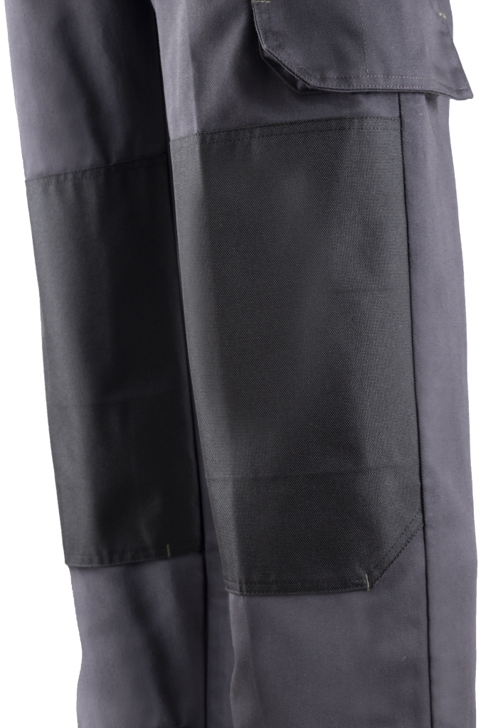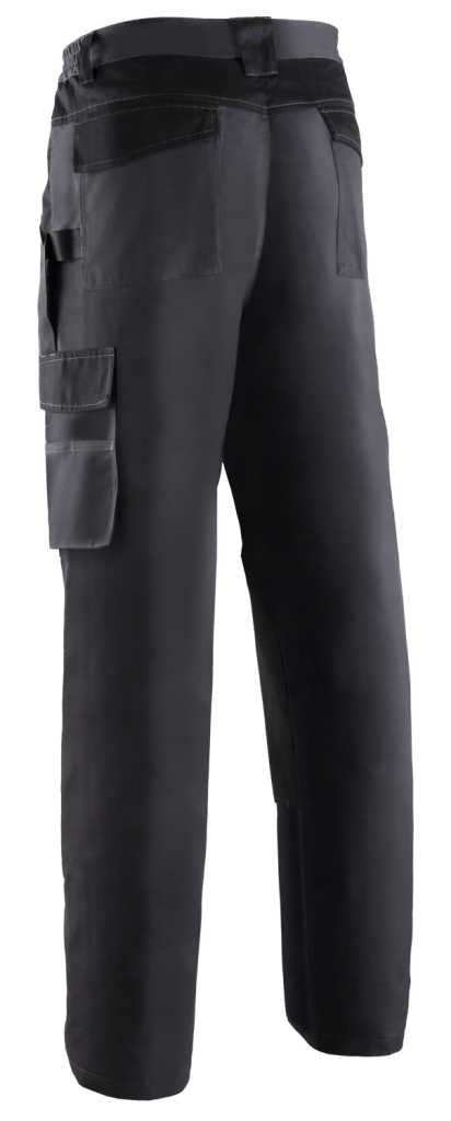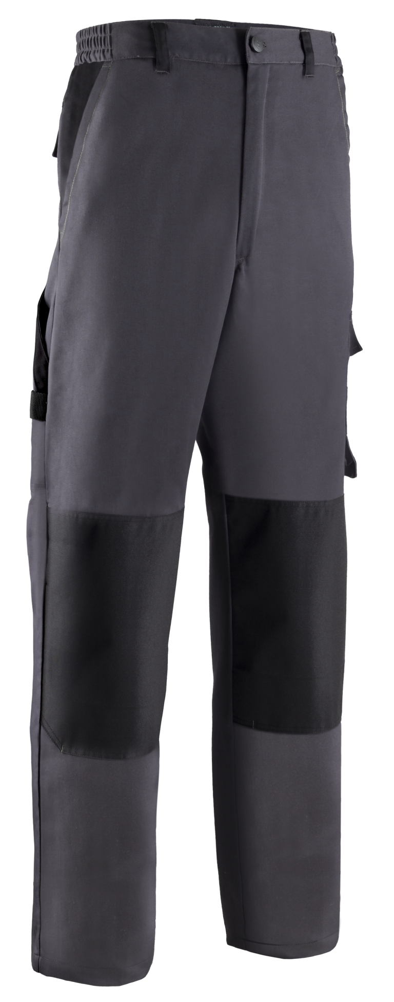 SERGÉ: 60%CO/40%PES 270g/m² + OXFORD 600D - Anthracite Taille élastiquée 6 poches 2 sangle outils Poches pour genouillères Finitions de couleur contrastée Coupe regular EN 14404 : Type 2
