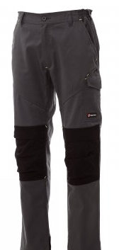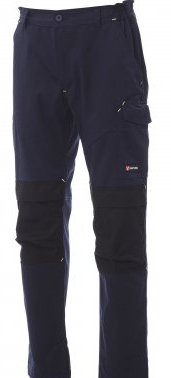 Pantalon unisexe, multi-saison avec poches genouillères, élastiques latéraux et passants à la taille, fermeture éclair et bouton en plastique, deux poches de coupe classique sur le devant, une poche latérale LOCK SYSTEM, un porte-mètre et un porte-smartphone, deux poches arrière, une ouverte et une avec rabat et velcro, inserts et surpiqûres en contraste, passepoils réfléchissants sur poche arrière, triples coutures.