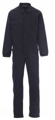 Combinaison à fermeture éclair centrale à double curseur couverte, élastique aux poignets et à la taille intérieur dos. Deux poches plaquées, deux poches sur la poitrine dont une pour smartphone, porte-badge, porte-stylo et porte-mètre. Coutures entrejambe et intérieur jambe à double aiguille.