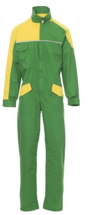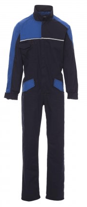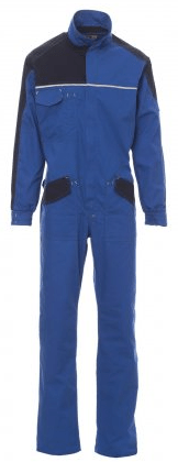 Combinaison de travail bicolore, fermeture frontale par zip, poignets avec élastique et serre-poignets avec bouton, deux poches frontales LOCK SYSTEM avec fond renforcé, une grande poche poitrine multifonction, porte-smartphone et porte-badge escamotable, deux poches arrière dont une avec rabat de fermeture et une avec deux bandes réfléchissantes, passepoil réfléchissant sur la poitrine et au niveau des reins, élastique au niveau des reins et double soufflet sur le dos pour plus de confort dans les mouvements.
