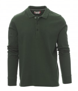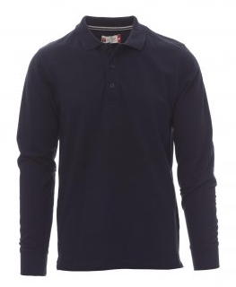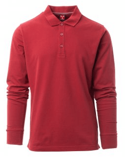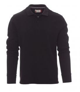 Polo pour homme à manches longues et 3 boutons assortis effet perlé, col et poignets en bord côtes, fentes latérales, coutures du col couvertes avec ruban en contraste, coutures stretch, ruban de renfort latéral, renfort profilé sur encolure arrière.