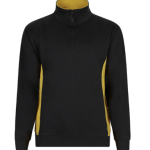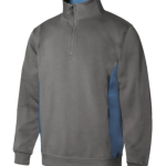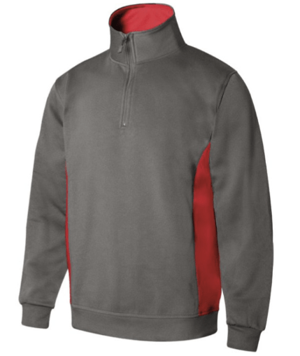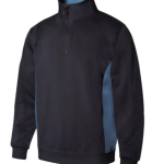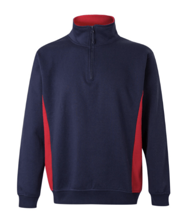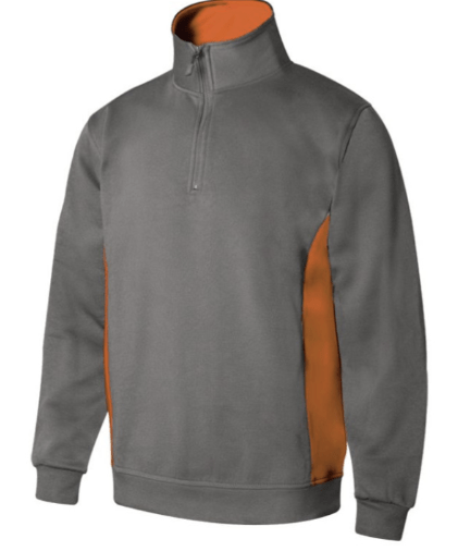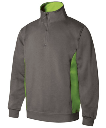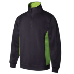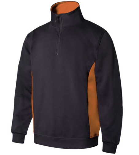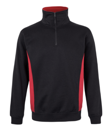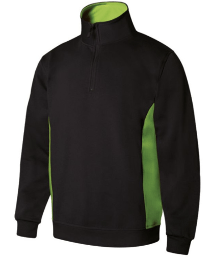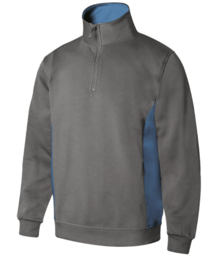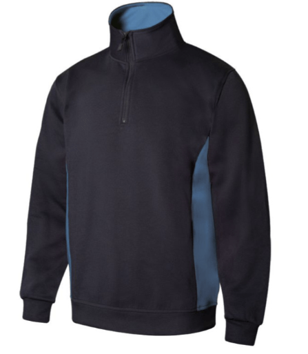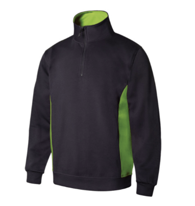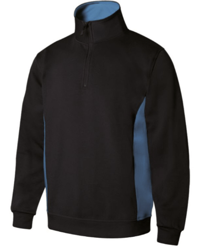 Col montant zippé. Côtés et intérieur du col contrastés. Poignets et taille en bords côte. Intérieur gratté.