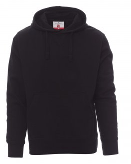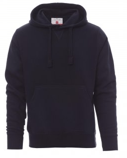 Sweat-shirt pour homme à capuche avec cordon coulissé assorti, couture esthétique en V au col, poches kangourou, manches montées, poignets et taille en bord côtes élastique, coutures renforcées. Ruban de renfort intérieur col assorti.