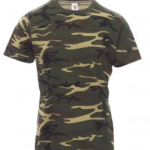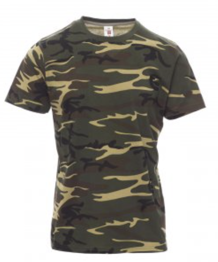 Tee-shirt pour homme, encolure ras le cou et manches courtes, col en bord côtes mixte spandex de 1,5 cm avec couture rabattue sur le devant, ruban de renfort d'épaule à épaule dans couleur en contraste sur le col, coutures stretch, structure tubulaire (couleur mimétique avec couture latérale)